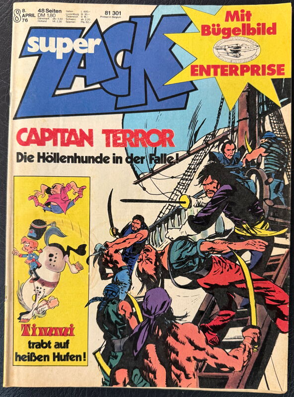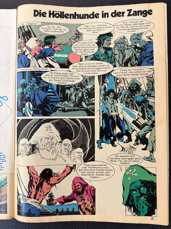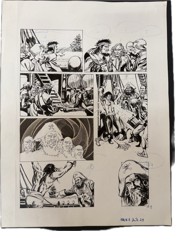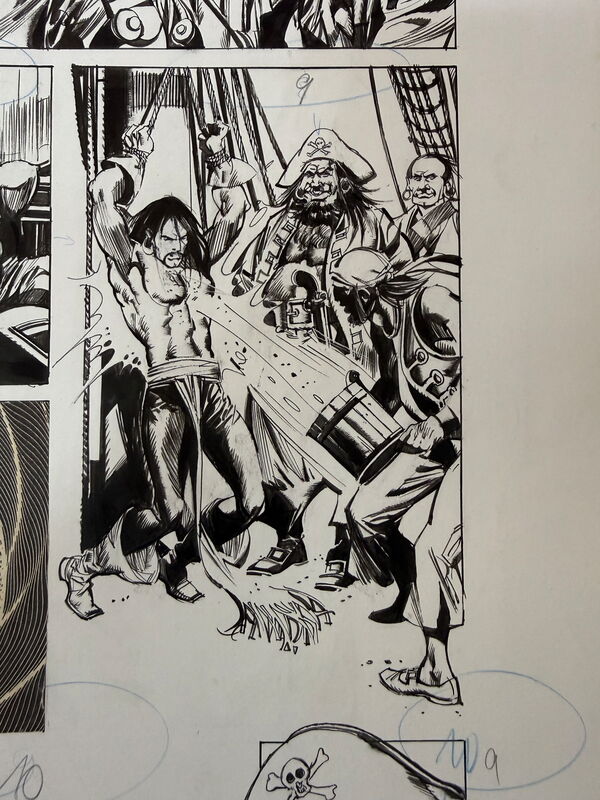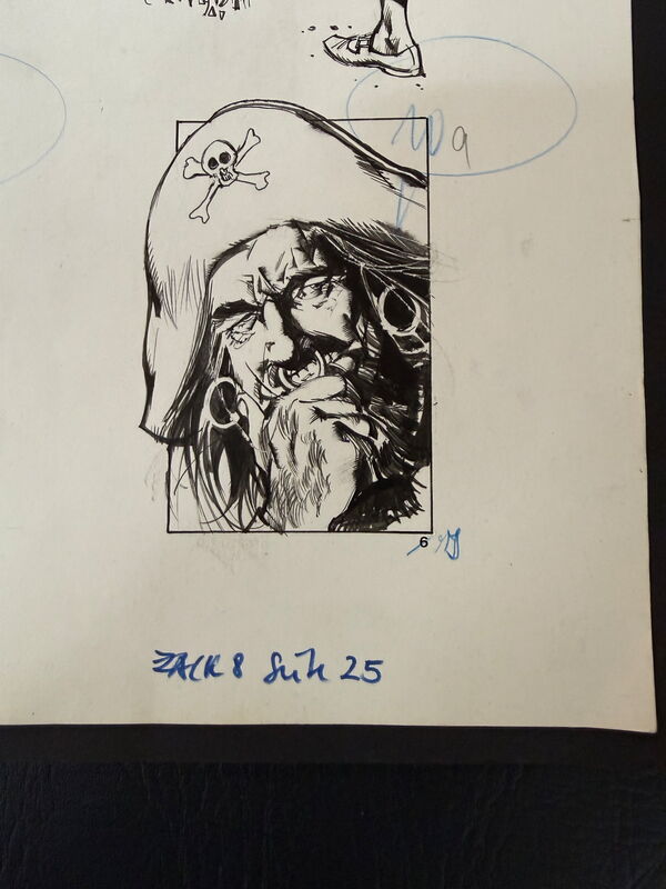Aus der ehemaligen Sammlung Krumm stammt diese wirklich fantastische Seite. Sie zeigt Captain Terror in Höchstform. Ausdrucksstark und wirklich toll im Erhaltungszustand. Ca. 54 x 40 cm.