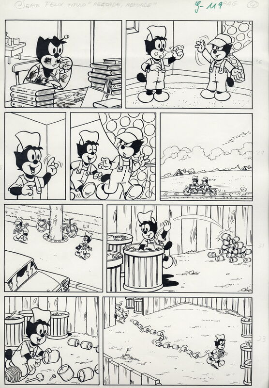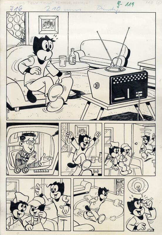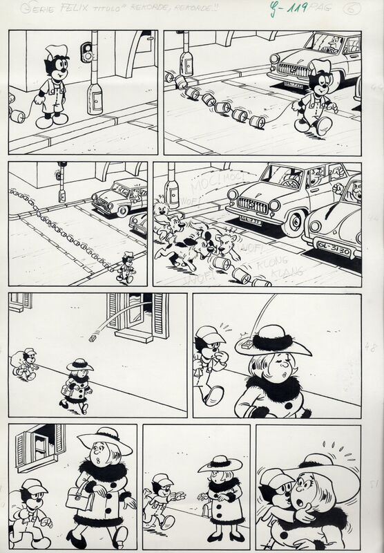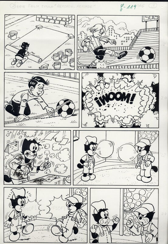 Felix - Vollständige Story in Form von Originalzeichnungen - Um Werbung zu integrieren nur gekürzt veröffentlicht. Dies im Felix Heft 716 (Bastei Verlag) als die Seiten 3-13. Im Original umfasst die Story 11 Seiten. Zeichner: Alfonso Borillo (Geboren 1946)
