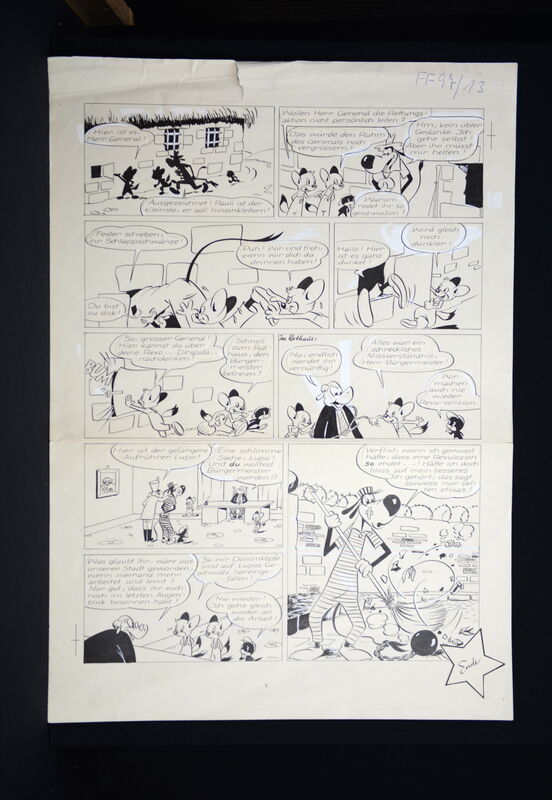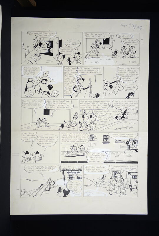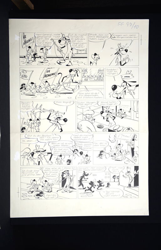 Fix und Foxi Originalzeichnung zur 10seitigen Geschichte „Die Revolution“, die in Heft 97 erstmals abgedruckt wurde.