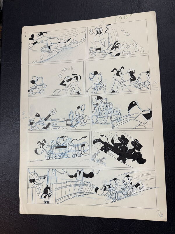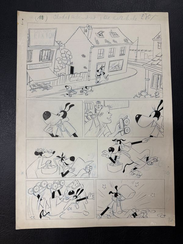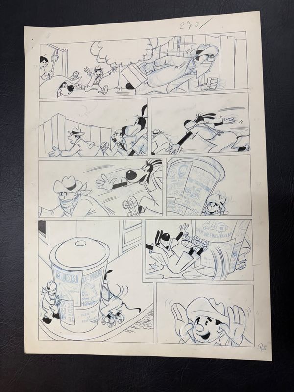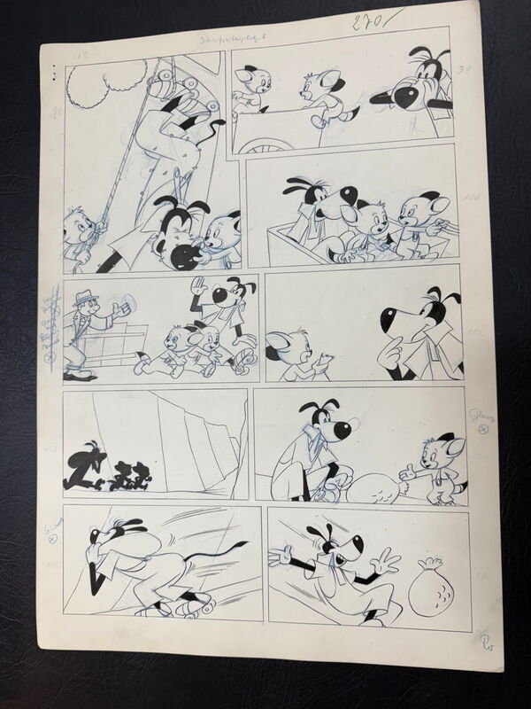 Zeichner dieser Geschichte war wohl unter anderem Vlado Magdic, denn auf der ersten Seite oben steht “Vlado” und daneben etwas, das schwer für uns zu lesen ist. Wir vermuten “Hebenstreift”, kennen diesen Zeichner aber nicht. Aus ungeklärten Gründen ist diese Story unveröffentlicht geblieben. Auch bei der Kaukapedia kennt niemand diese Geschichte. Dies macht diese Seiten zu etwas ziemlich Besonderen.