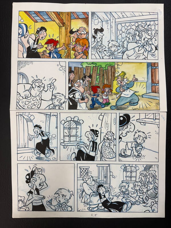 Super schöne und in Teilen wunderbar farbfrohe Seite. Hier wird wohl ein Dieb überführt. Ca. 51 x 38 cm.UNIKAT