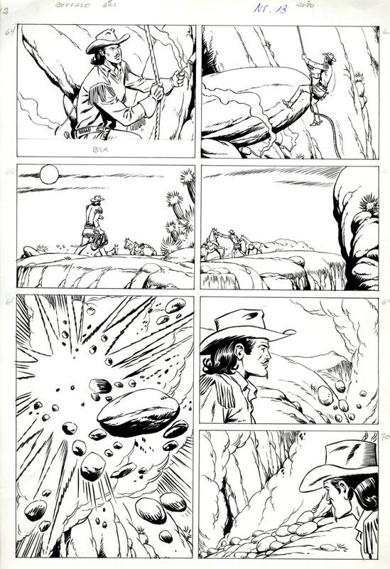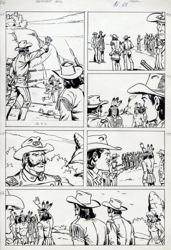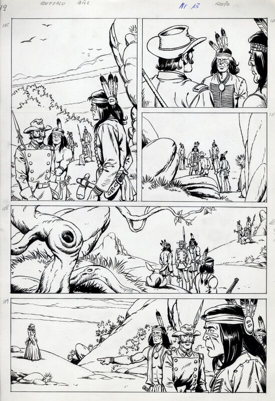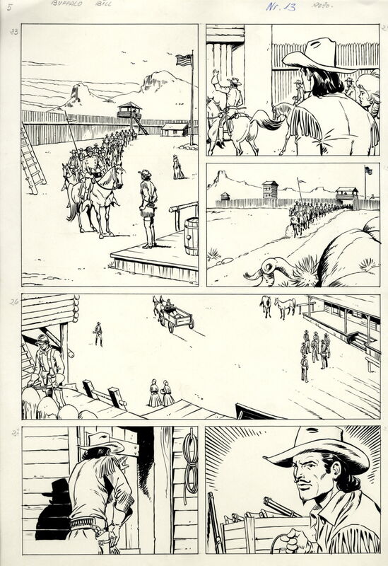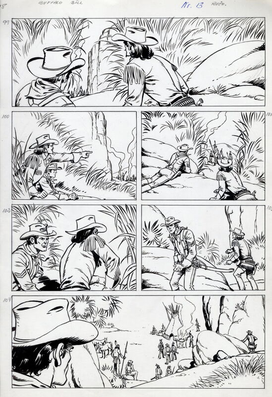 Buffalo Bill - 27seitige Originalstory des Zeichners Francisco Diaz Rojo (1931 bis 2012) - Abgedruckt im Lasso Heft 220 (Buffalo Bill) unter dem Titel „Der verlorene Schwadron“ (ursprünglich geplant als „Die große Falle“)