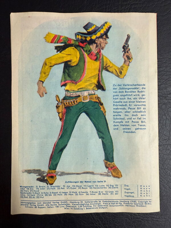 Heft befindet sich in einem schönen 1er Zustand. Keine Risse, keine Knicke und keine rostigen Klammern. Wir haben nicht alle unserer tollen Pecos Bill fotografieren können. Deswegen unbedingt auch unter Großbänden noch nach fehlenden Heften gucken.Zustand: 0-1-