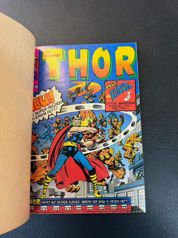 Super erhaltenes Exemplar. Kommt quasi fast druckfrisch daher. Gute 1er-Erhaltung. Winziger Mangel an der Rückseite oben. Enthält mit Thor 1 und Hulk Dracula 2 zwei gesuchte Marvel-Raritäten.Zustand: 0-1-