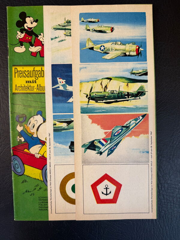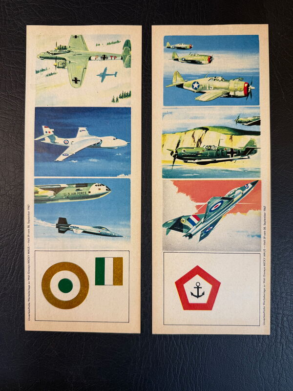 Sehr gutes Heft. Keine Risse, keine Knicke und natürlich keine rostigen Klammern. Natürlich ggf. mit Sammelmarke. Beide losen Flugzeugstreifen auch enthalten.Zustand: 0-1-