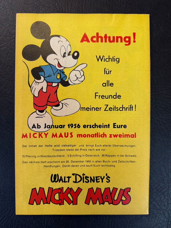 Donald und die Weihnachtsbäume. Fantastisches Heft. Viel mehr an Zustandsqualität ist quasi nicht möglich. Wir denken ein ungelesenes Exemplar, welches auch hohen Ansprüchen genügt. Zwei winzige Blitzer am Falz und eine kleine Druckspur (wohl Packschnur Eindruck) oberhalb des I von Disney. Guter 1er Erhaltung. Zustand: 0-1-
