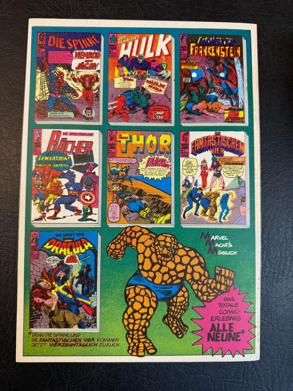 Sehr schön im Zustand. Keine Risse oder Knicke. Auch keine rostigen Klammern. Hier und da Blitzerchen am Falz. Prima 1er Erhaltung.Erster Auftritt des Grünen Kobolds.